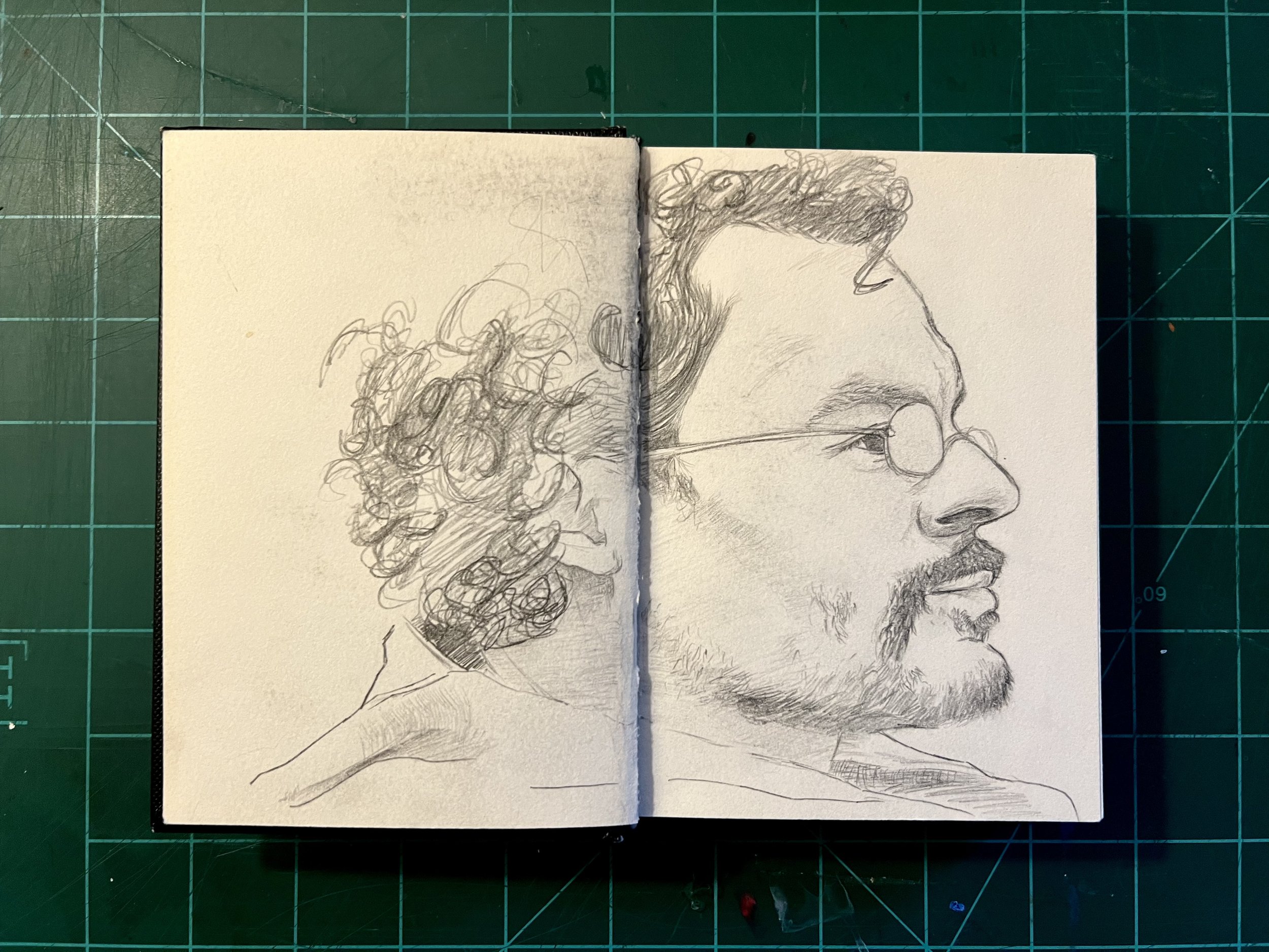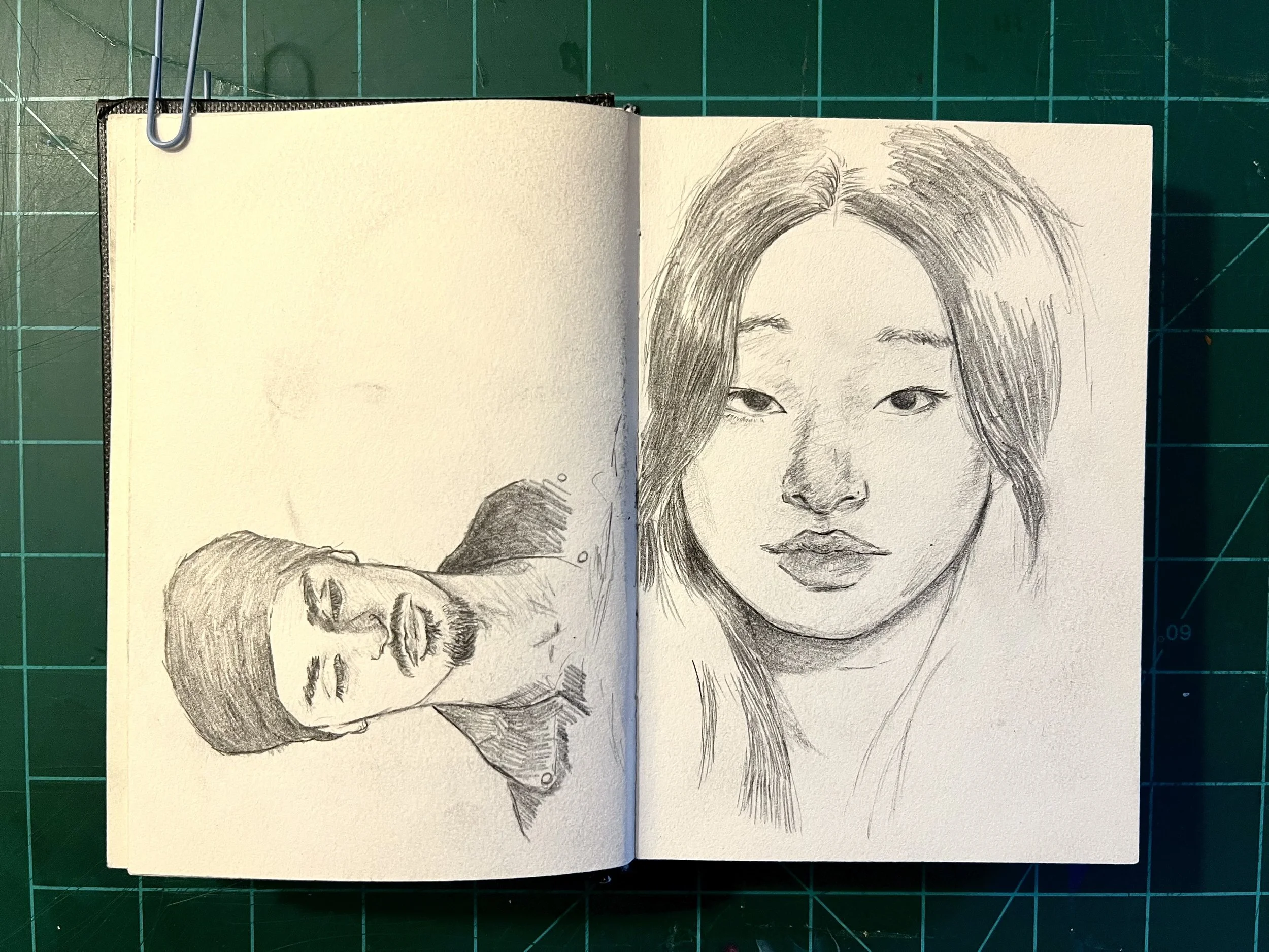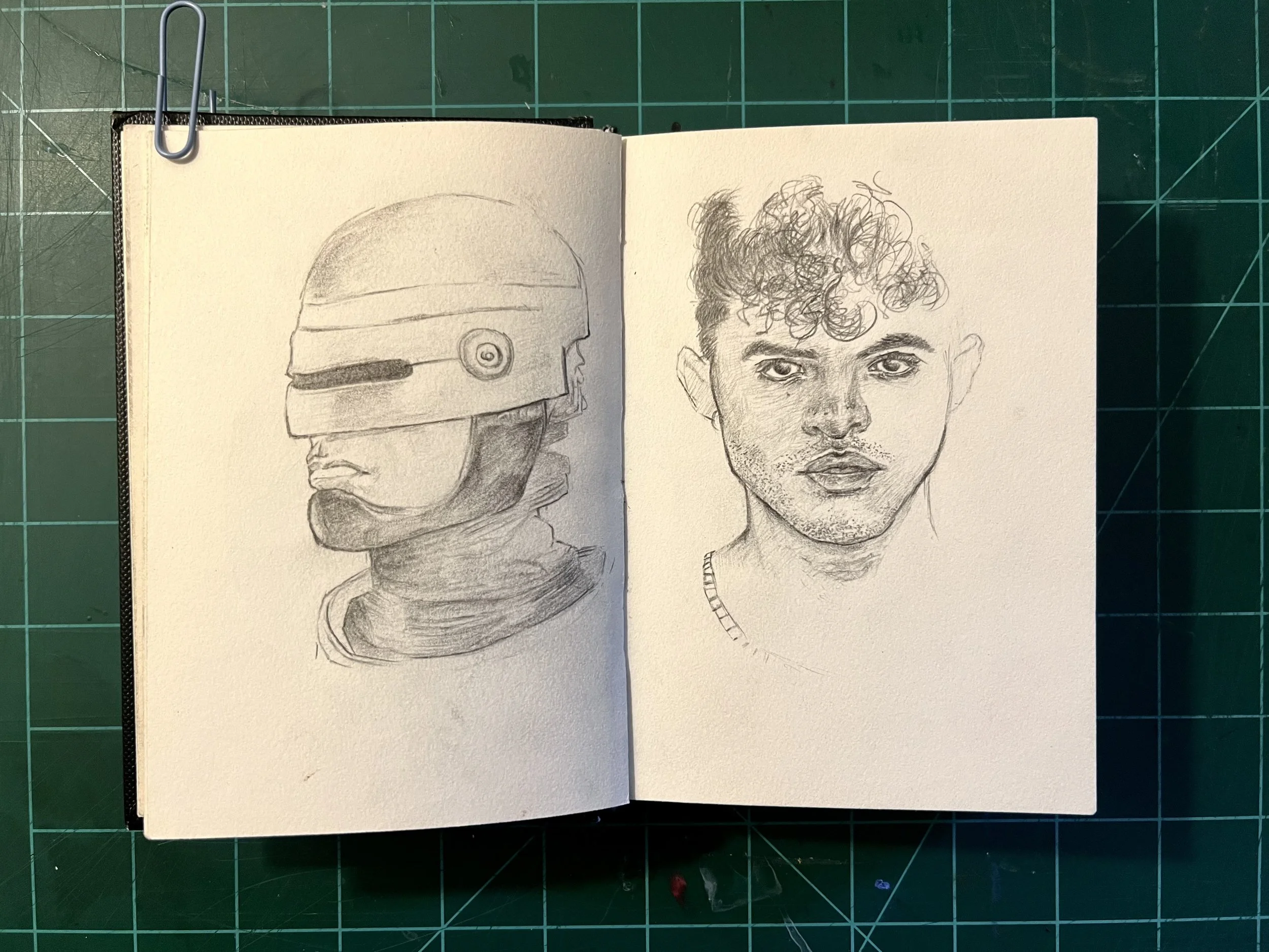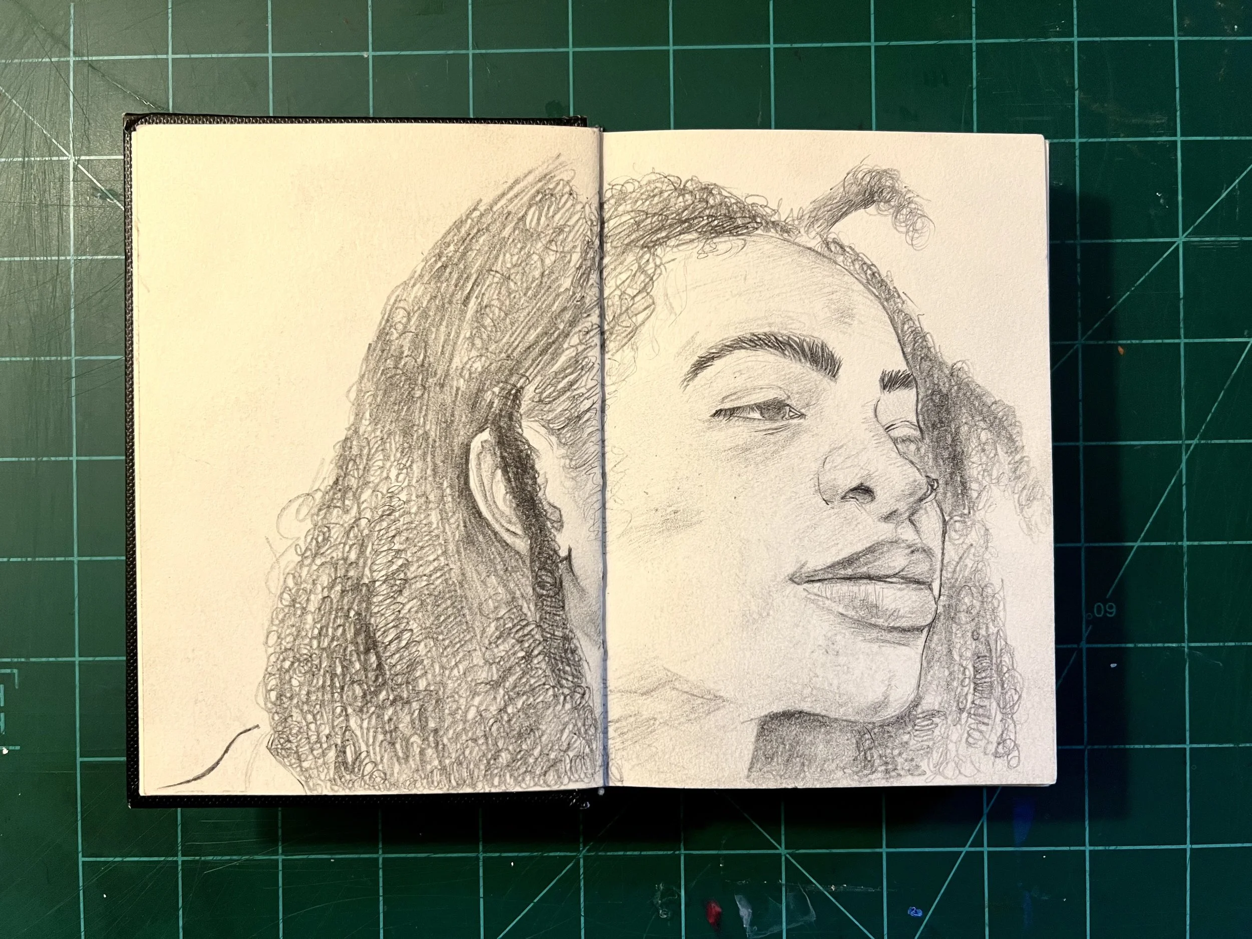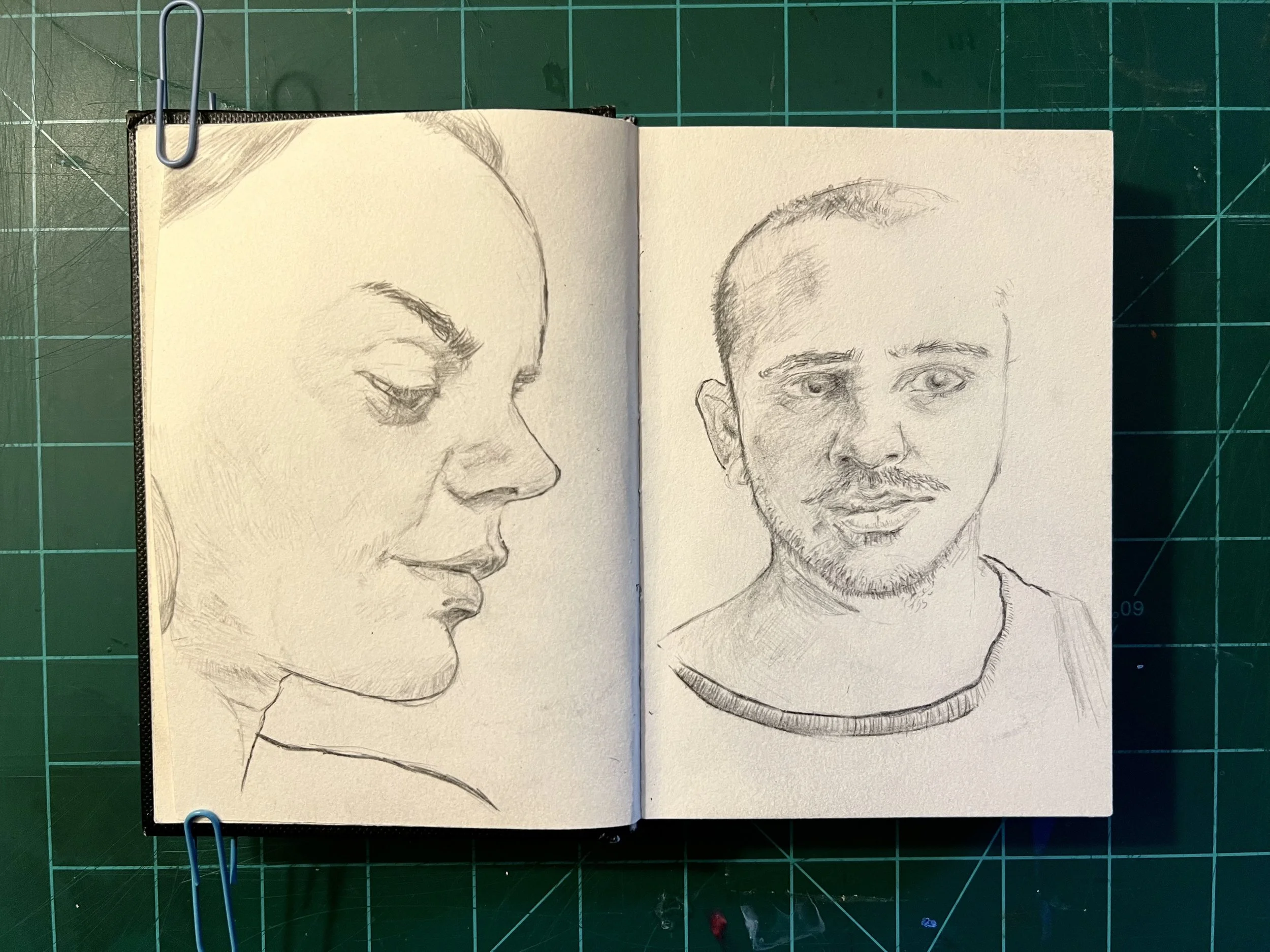 I think its important to work on big and small scales, both to help and challenge you in different ways relating to detail and relation. This is my mini sketchbook to help me with that as well as loose and quick sketching of faces. Ultimately it’s meant to be a practice book.