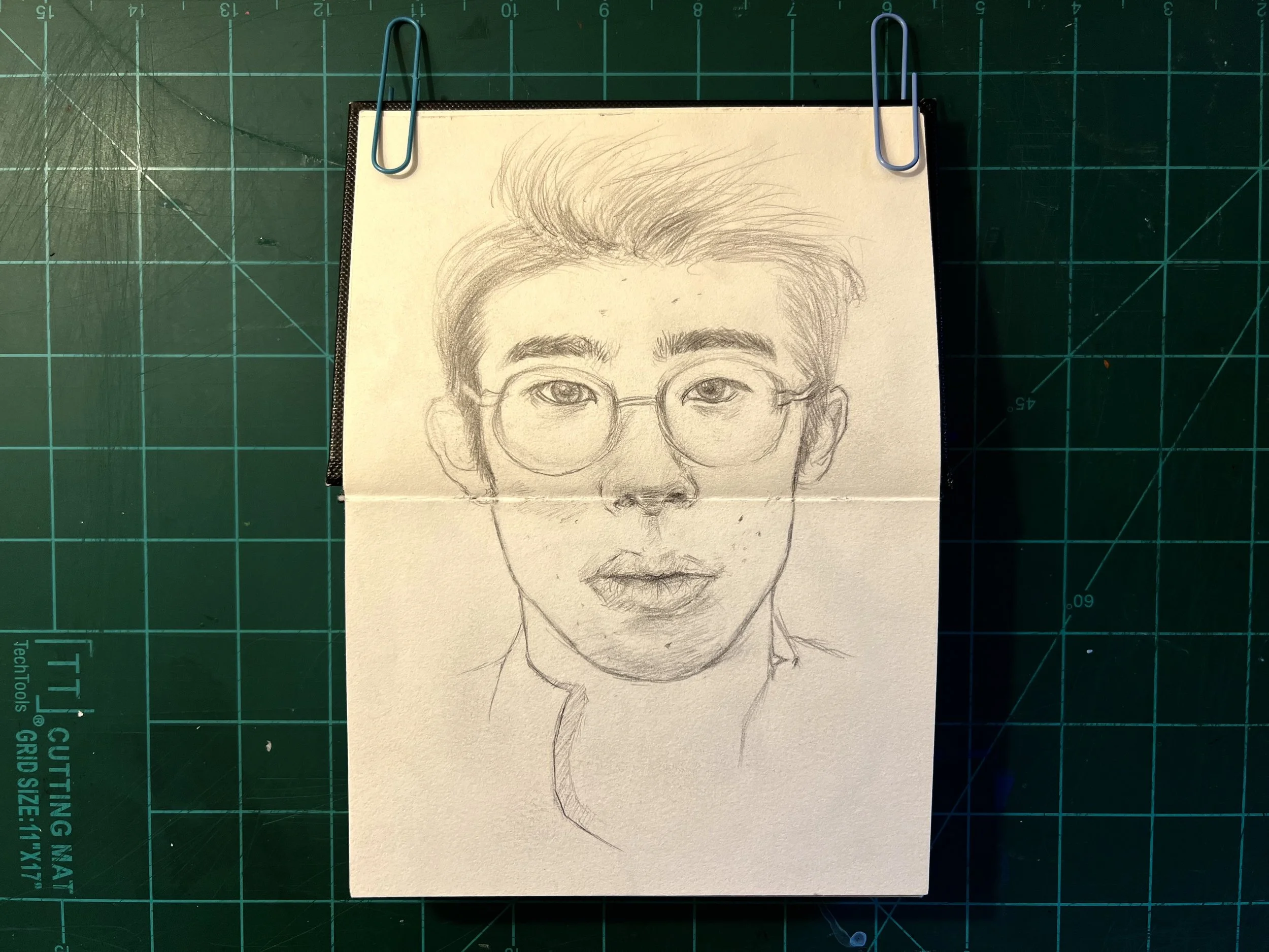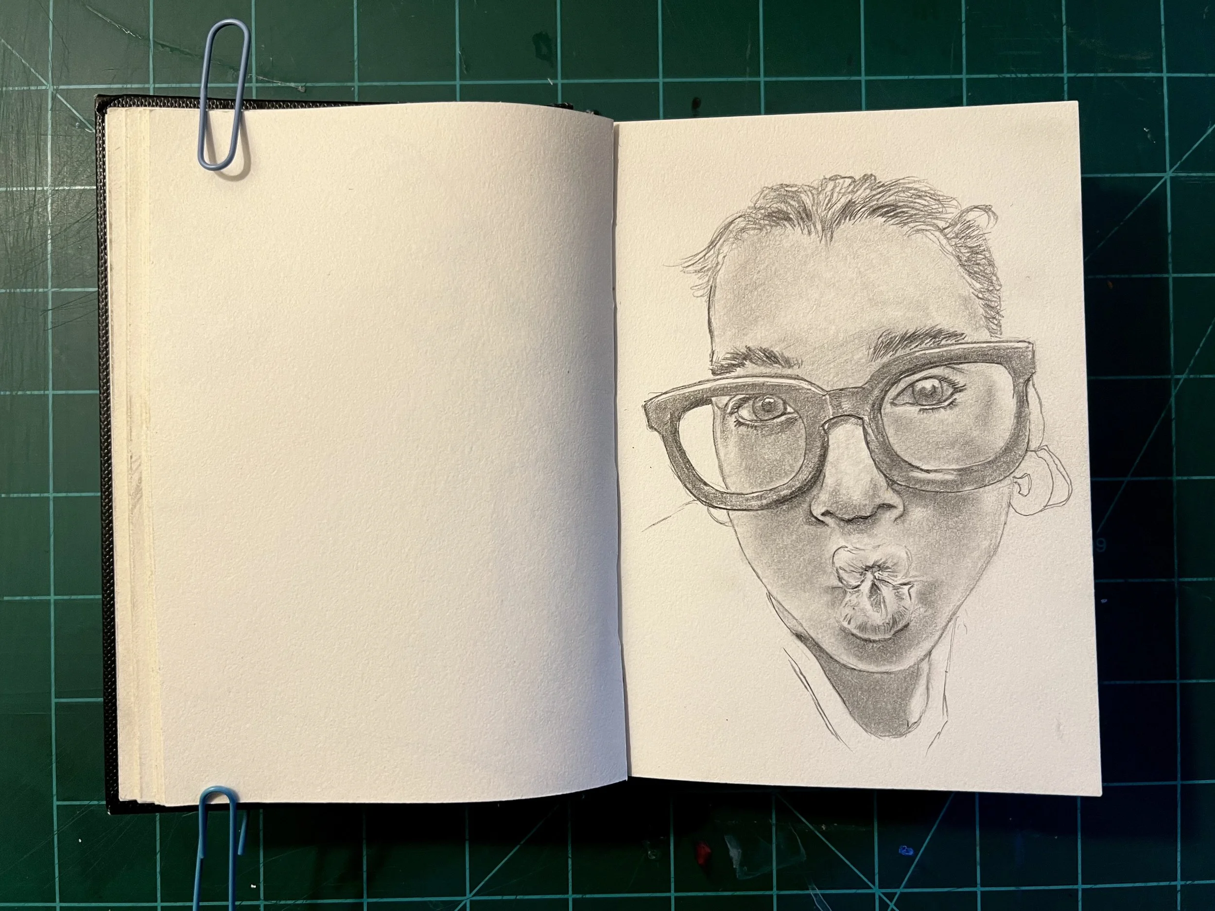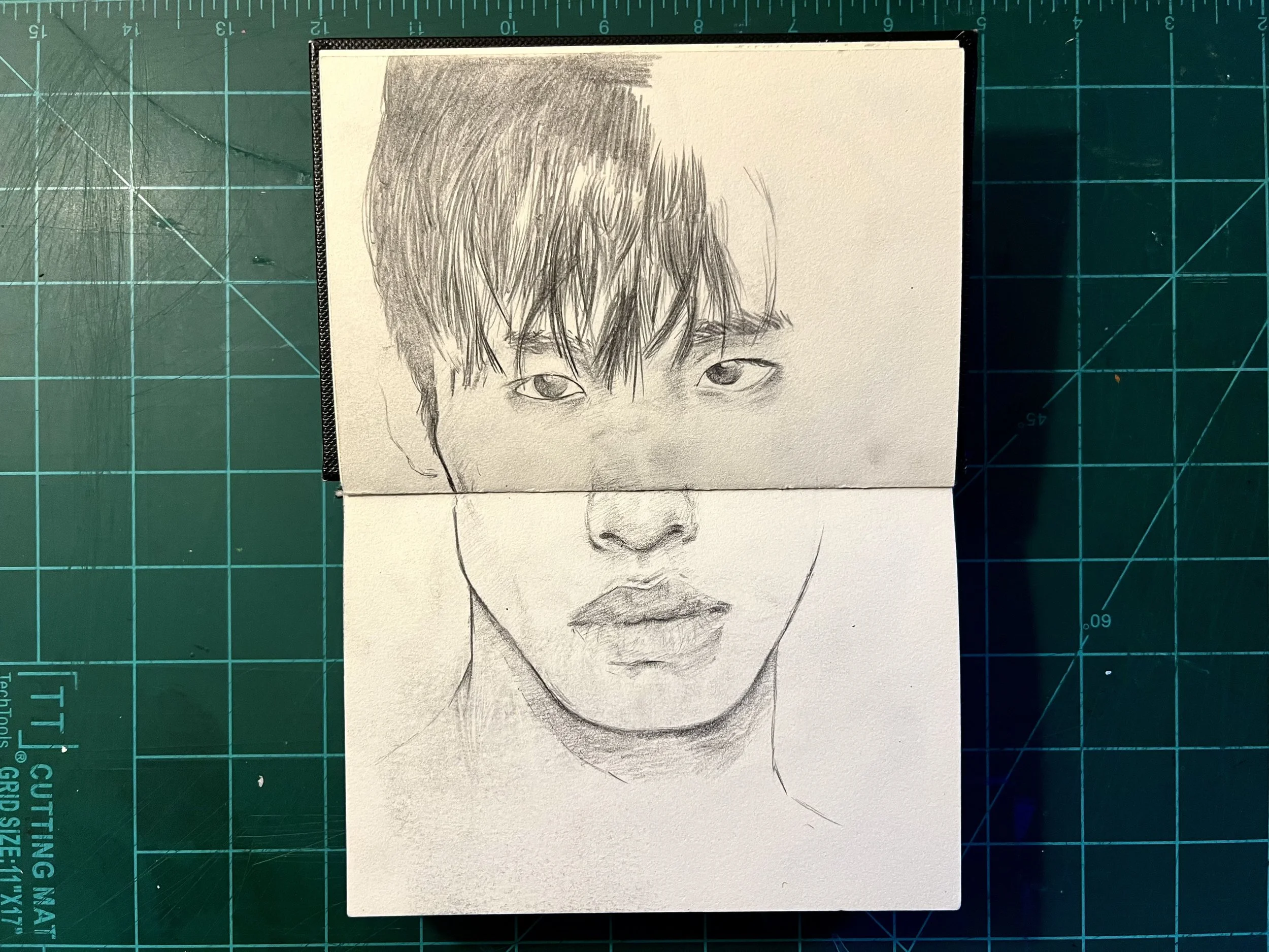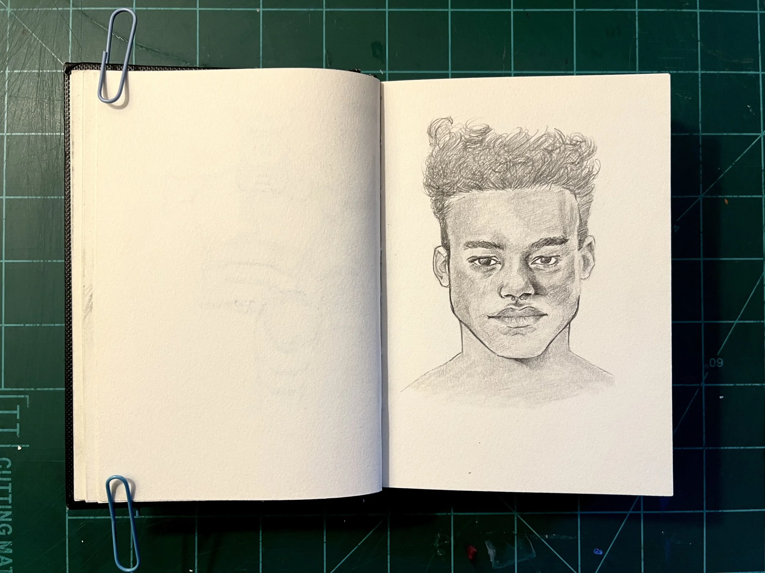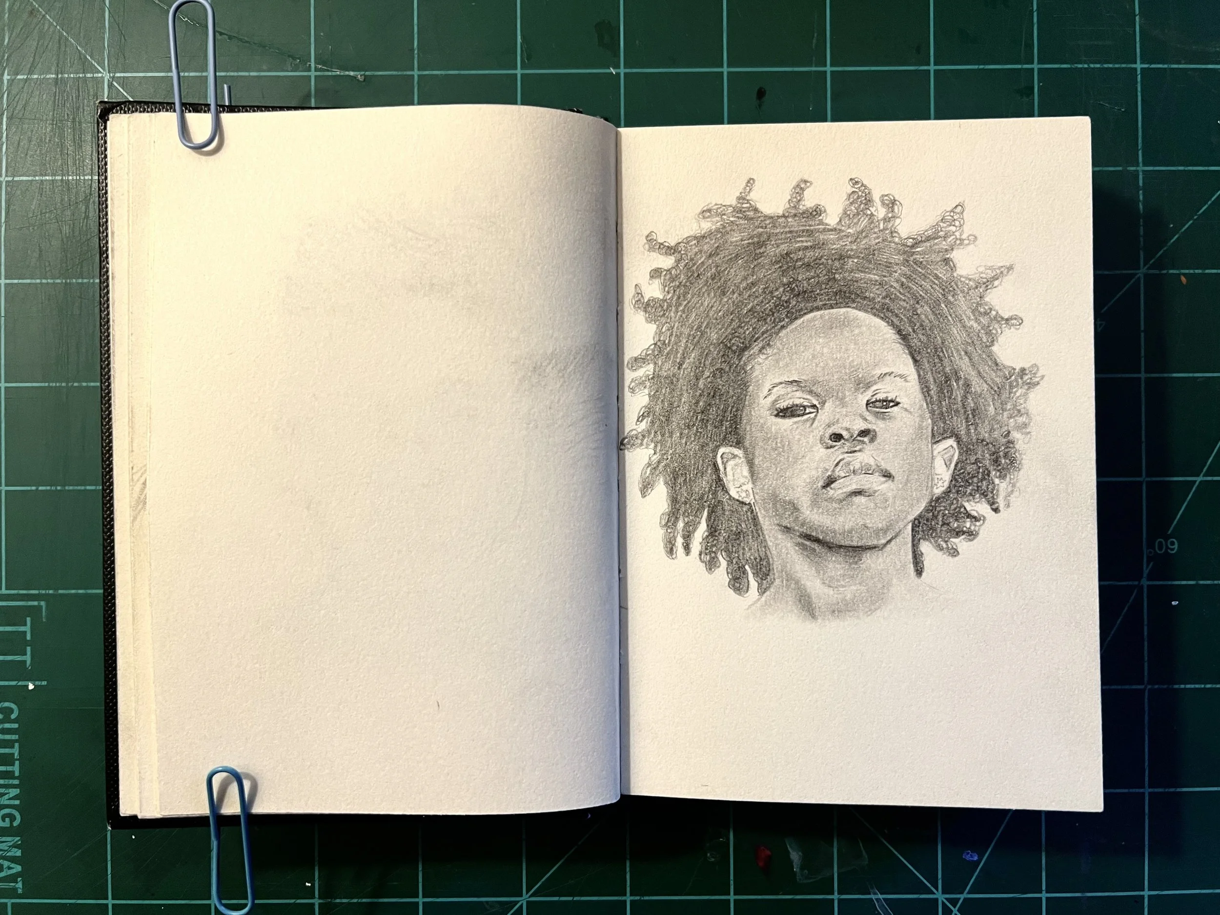 I think its important to work on big and small scales, both to help and challenge you in different ways relating to detail and relation. This is my mini sketchbook to help me with that as well as loose and quick sketching of faces. Ultimately it’s meant to be a practice book.
