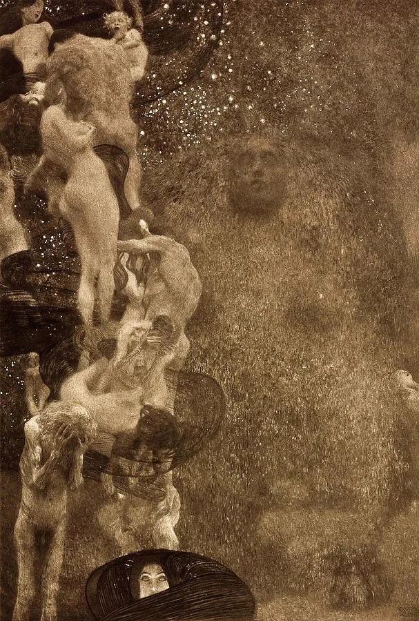 In 1894 Klimt was commissioned by the University of Vienna to paint murals within the ceilings of the Great Hall of the university. Named “Philosophy”, “Medicine”, and “Jurisprudence” the pieces would receive an overall negative appeal with them being deemed “pornographic”.